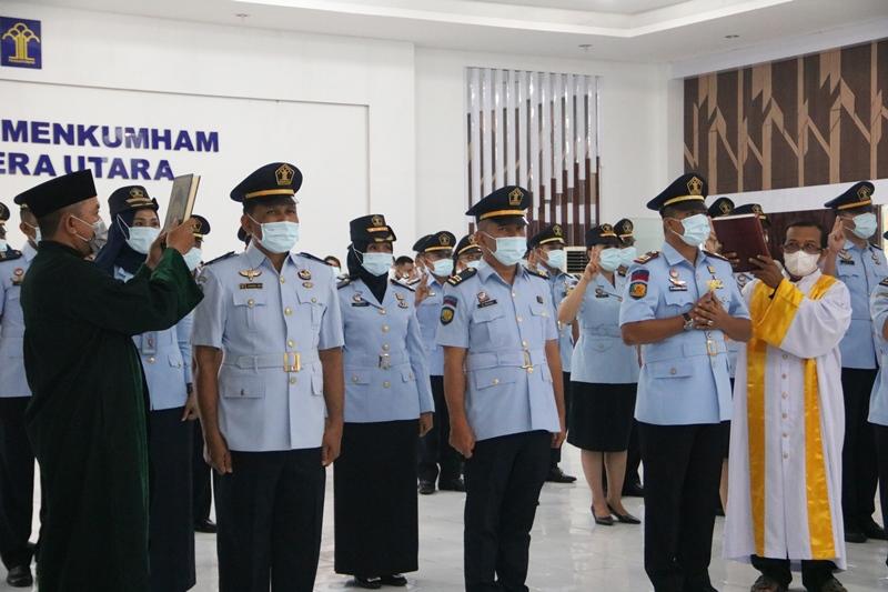 Kepala Kantor Wilayah Kementerian Hukum dan HAM Sumatera Utara Imam Suyudi mengambil sumpah dan melantik pegawai dalam Jabatan Administrasi serta