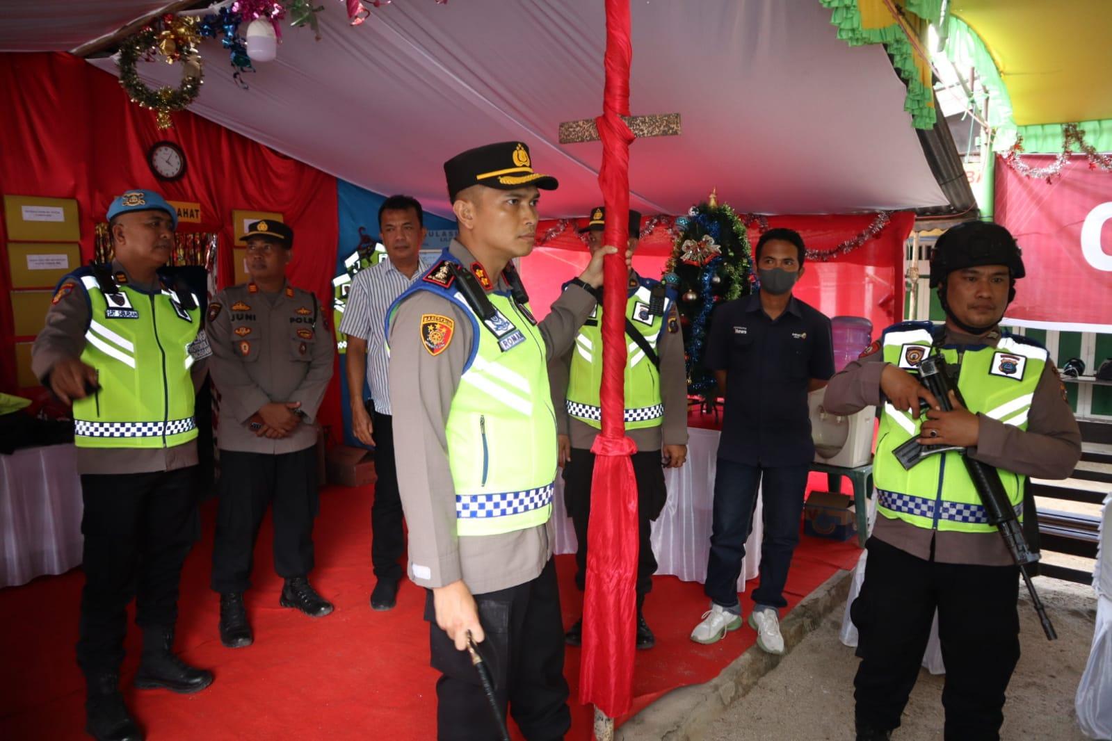 Kapolres Asahan AKBP Roman Smaradhana Elhaj berkeliling Pos Pengamanan (PAM) membagikan parcel Natal kepada personil.