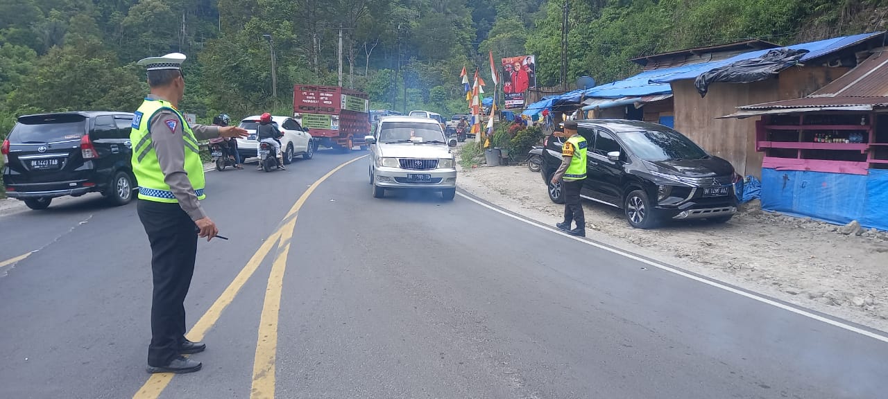 Kasat Lantas Polres Dairi AKP Herliandri, SH memberikan pelayanan kepada pemudik tahun baru yang melintasi kabupaten Dairi agar merasa aman