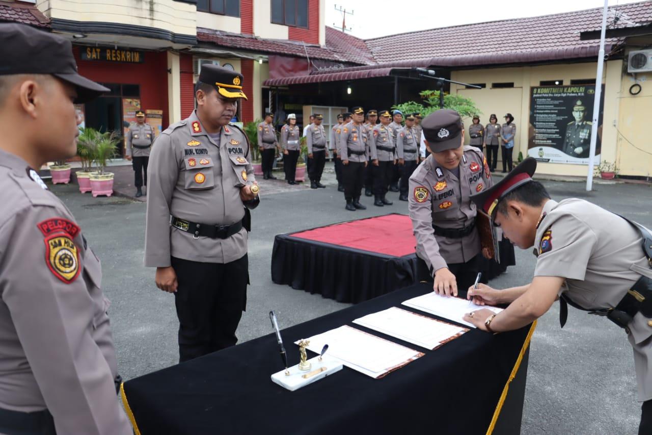 Kapolres Tebingtinggi AKBP Mochamad Kunto Wibisono melakukan Sertijab Kapolsek Rambutan dari AKP Hotman Samosir kepada AKP Iswadi