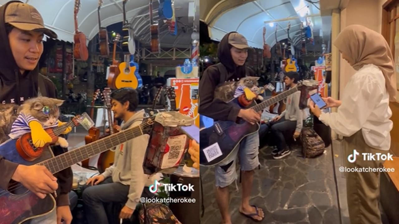 Mengamen dengan membawa kucing saja pada dasarnya sudah cukup menarik atensi pengunjung yang ada di tempat tongkrongan itu.