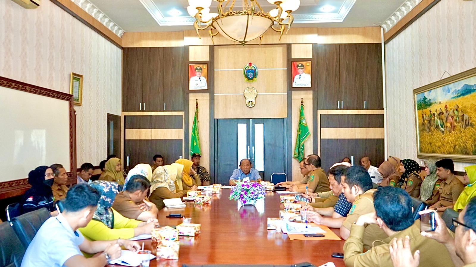 TRIBUN-MEDAN.COM, STABAT - Pelaksana Tugas (Plt) Bupati Langkat H Syah Afandin SH pimpin rapat koordinasi lintas sektoral dalam penanganan kasus anak sesuai amanat UU nomor 35 tahun 2014 tentang perlindungan anak, di Kantor Bupati, Selasa (10/1/2023).