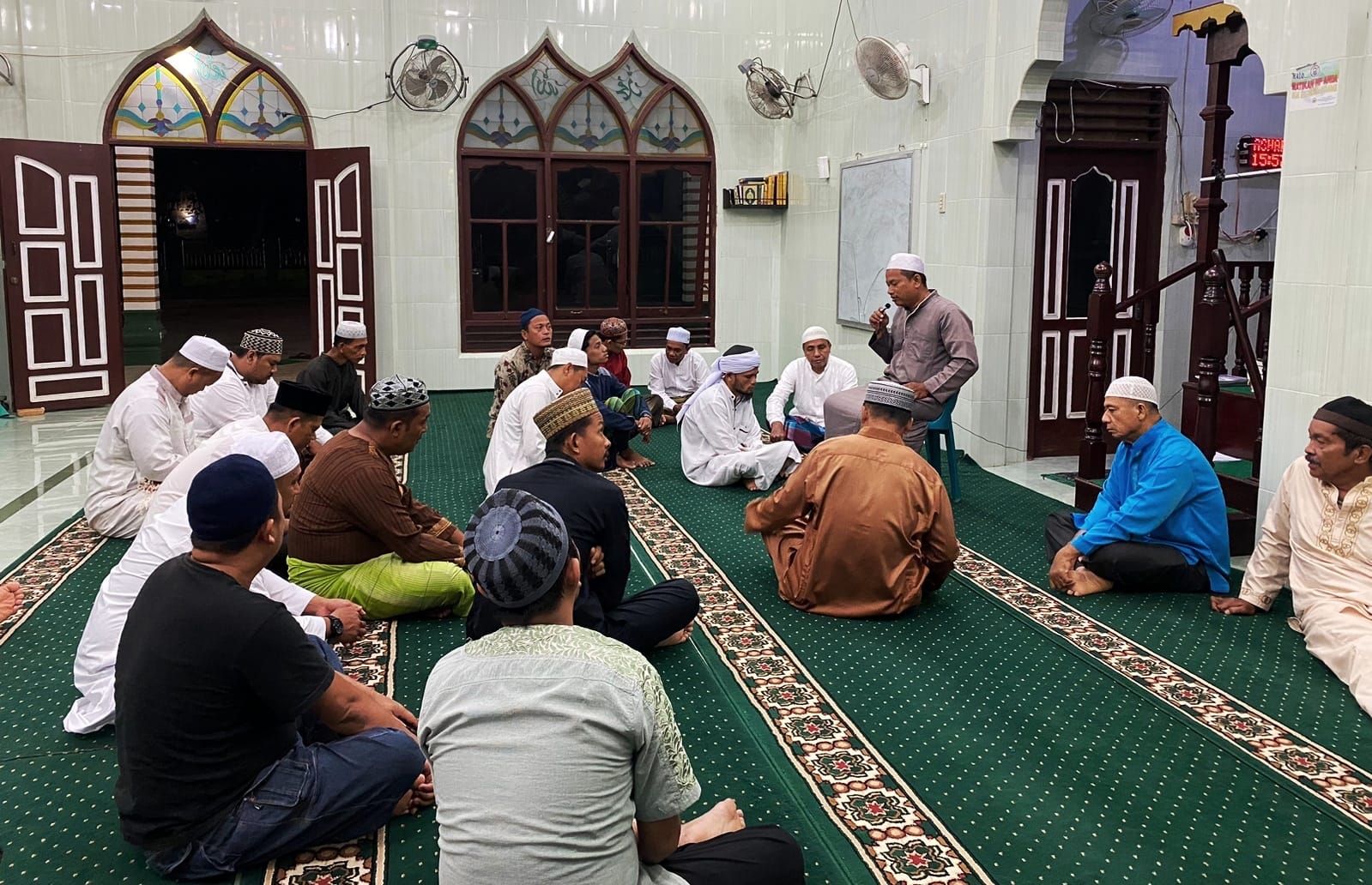 Personil Polres Tanjungbalai Binrohtal dengan metode pesantren kilat di Mesjid Al Ikhlas Kecamatan Datuk Bandar Timur, Sabtu (21/1/2023).