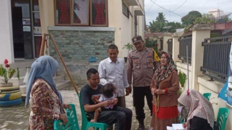 Bhabinkamtibmas Polsek Siantar Barat Aipda B Purba dan Aipda Rayendra P Damanik melakukan pendampingan untuk mengikuti posyandu.