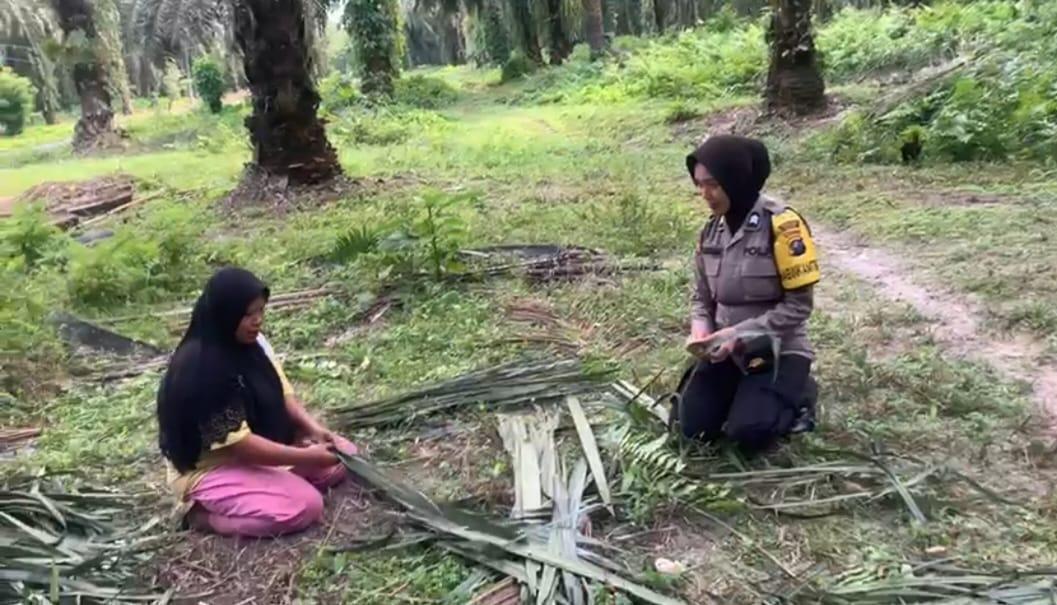 TRIBUN-MEDAN.com, ASAHAN - Bhabinkamtibmas Polsek Kota Kisaran Briptu linda Siregar turut membantu masyarakat membuat sapu lidi dari pelepah daun kelapa sawit.