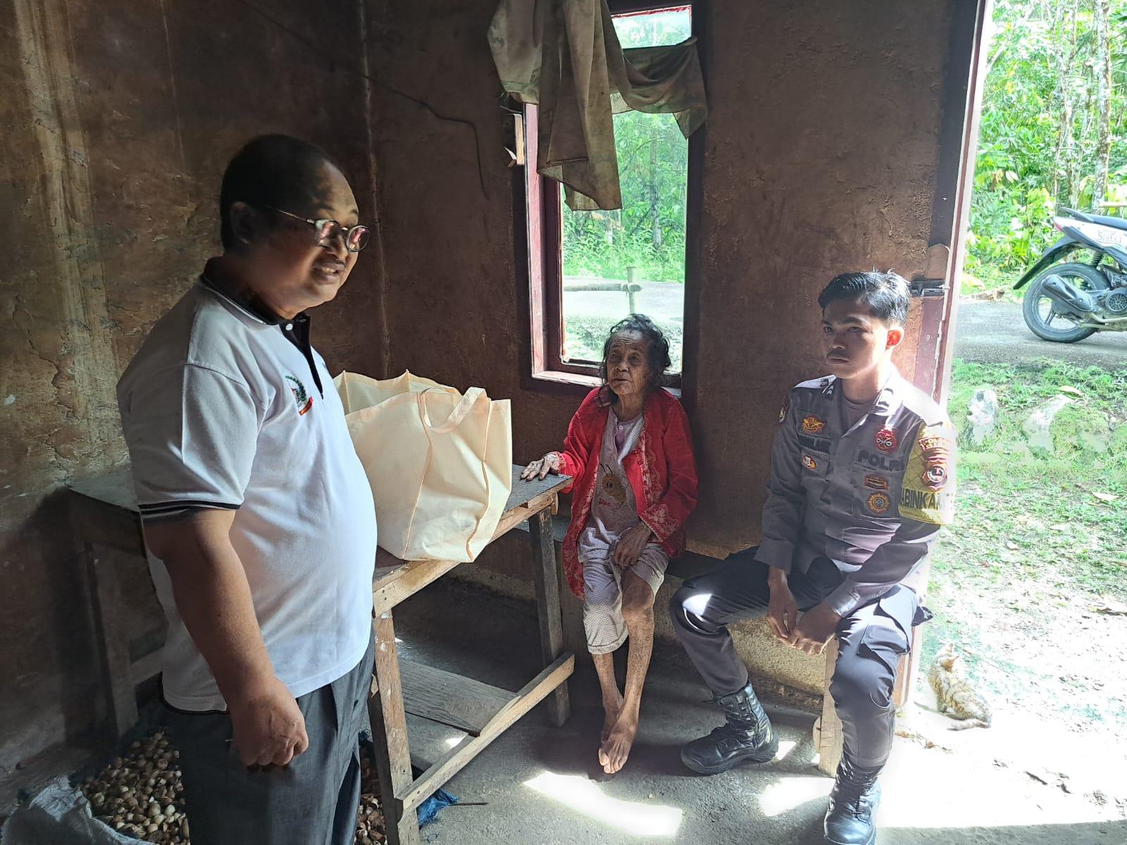 Bhabinkamtibmas Polsek Gunungsitoli Briptu Pandu B Lase yang didampingi oleh Kepala Desa Hiligodu Ulu Anasir Laoli dan Kepala Dusun I Bryan Laoli mengunjungi rumah Adisa Ziliwu dan menyerahkan bantuan Tali Asih berupa bahan sembako.