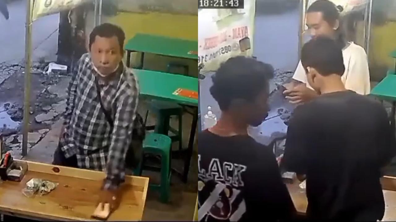 Pada unggahan tersebut tampak rekaman CCTV pada Kamis (26/1/23) pukul 18.21 WIB yang menunjukkan seorang pria sedang mendatangi warung makan di pinggir jalan.