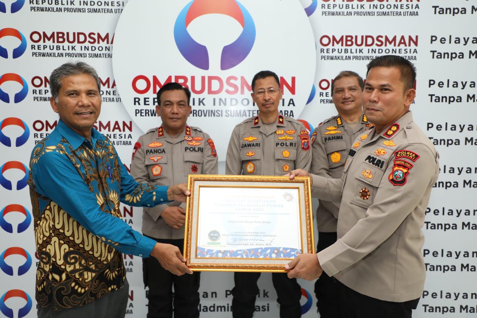 Kapolres Binjai di Kantor Ombudsman RI Perwakilan Provinsi Sumut pada acara Penganugrahan hasil survei kepatuhan Ombudsman RI tersebut Kapolda Sumut Irjen Pol Panca Putra Simanjuntak mengatakan bahwa memberikan pelayanan publik yang prima kepada masyarakat merupakan suatu keharusan bagi Polri sebagai penyelenggara layanan publik.