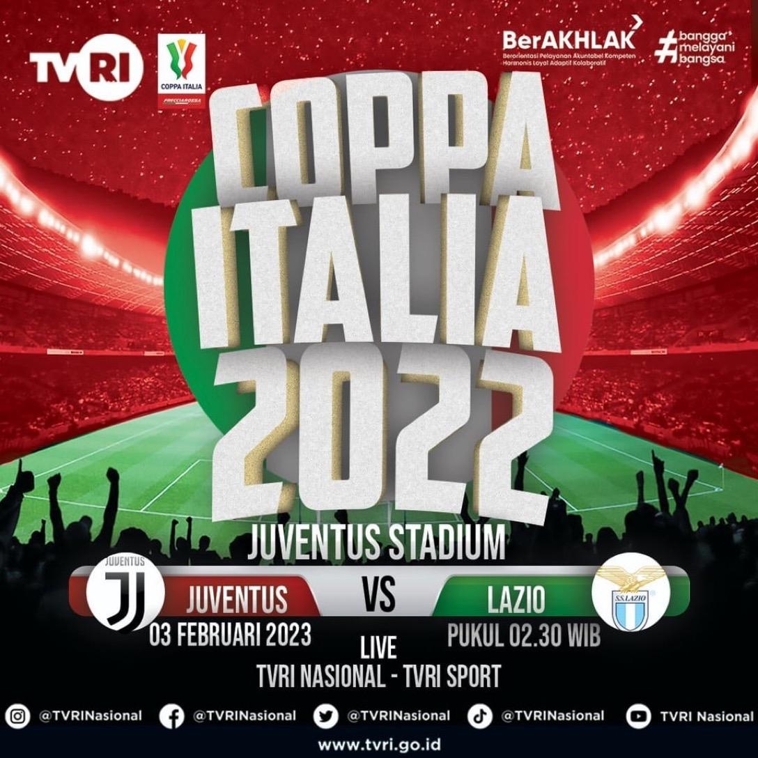 Jadwal siaran langsung dan Live Streaming TVRI laga Juventus vs Lazio malam ini bisa ditonton mulai jam 03.00 WIB.