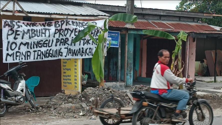 "Ini sebuah bentuk kekesalan kami, dimana proyek drainase sepanjang 300 meter ini tak kunjung selesai," Ucap Eko.