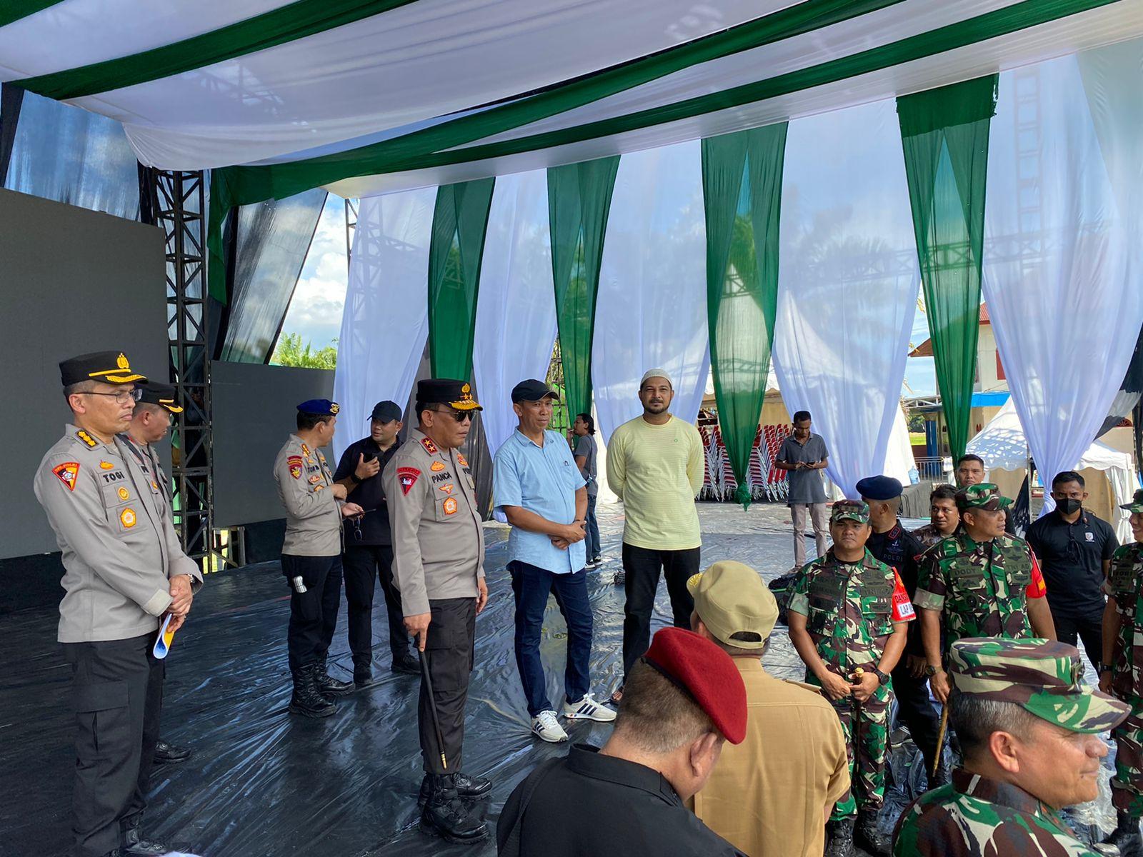 Pantauan di lokasi, Kapolda Sumut Irjen Pol RZ Panca Putra Simanjuntak, terlihat mengecek langsung kesiapan panitia acara sehingga nantinya tidak ada gangguan saat dihadiri Wakil Presiden RI Ma'ruf Amin.