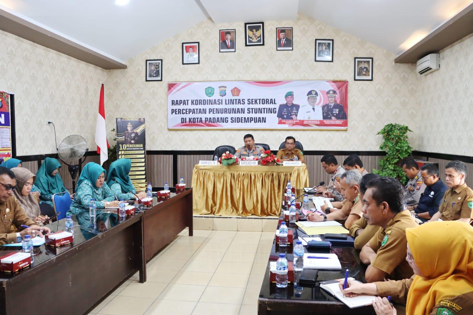 Kapolres Padangsidimpuan AKBP Dwi Prasetyo Wibowo memimpin rapat koordinasi (Rakor) lintas sektoral dalam rangka percepatan penurunan stunting.