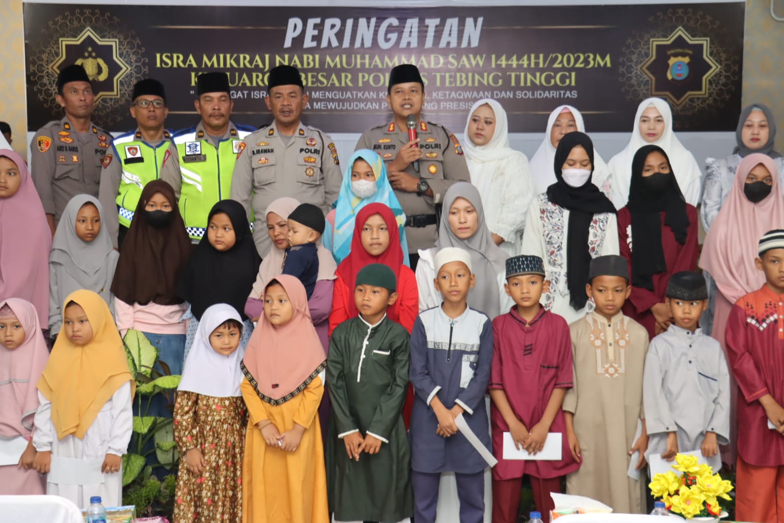 Bersama 30 Anak Yatim Kapolres Tebing Tinggi Polres Peringati Isra Miraj Nabi Muhammad SAW