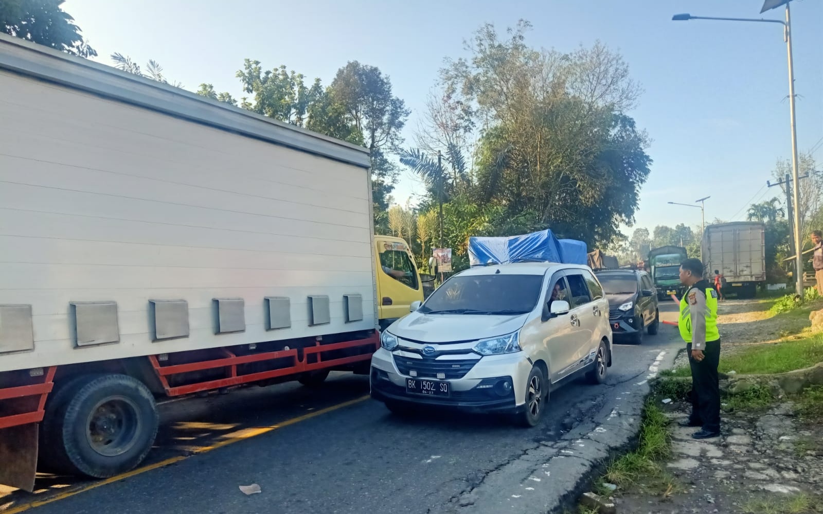 Arus lalu lintas di jalur Medan-Berastagi sempat macet parah akibat kecelakaan yang lamban ditangani petugas