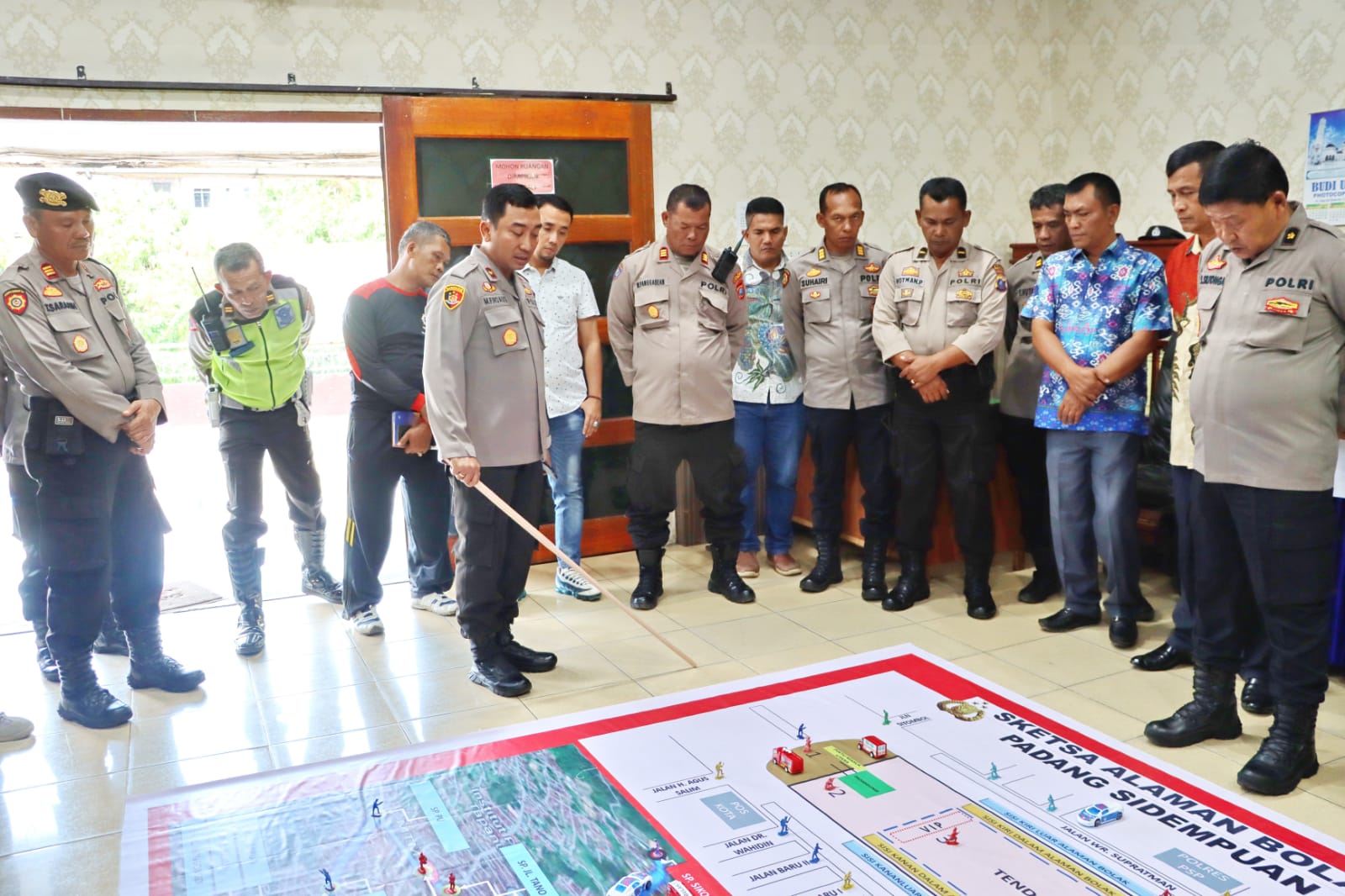Kapolres Padangsidimpuan AKBP Dwi Prasetyo Wibowo, SIK memimpin strategi pengamanan dengan Tactical Floor Game (TFG) di Aula Polres Padangsidimpuan