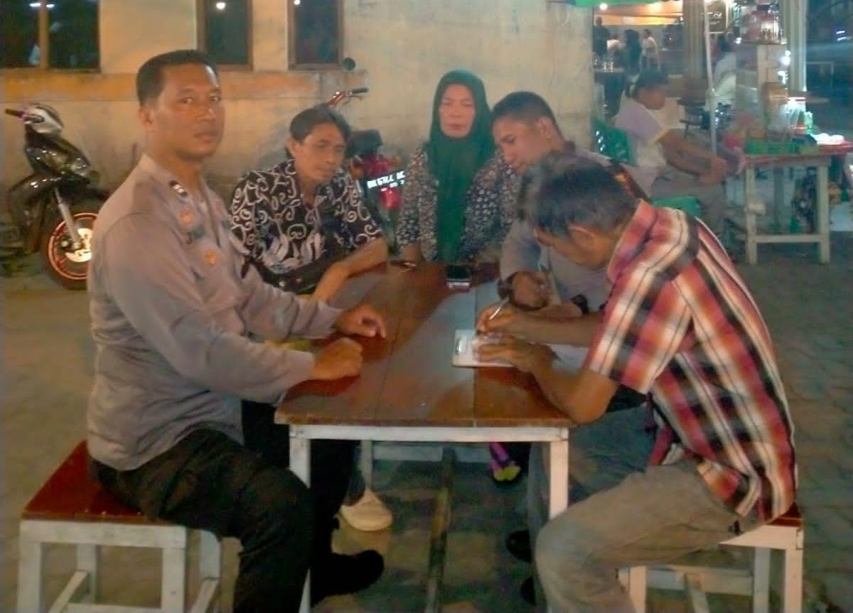 Personel SPKT Polres Tebing Tinggi Kepala SPK C Aiptu Jumadi, Aipda Gazali dan Bripka Donal Purba melakukan mediasi masalah pencurian ban roda geroba