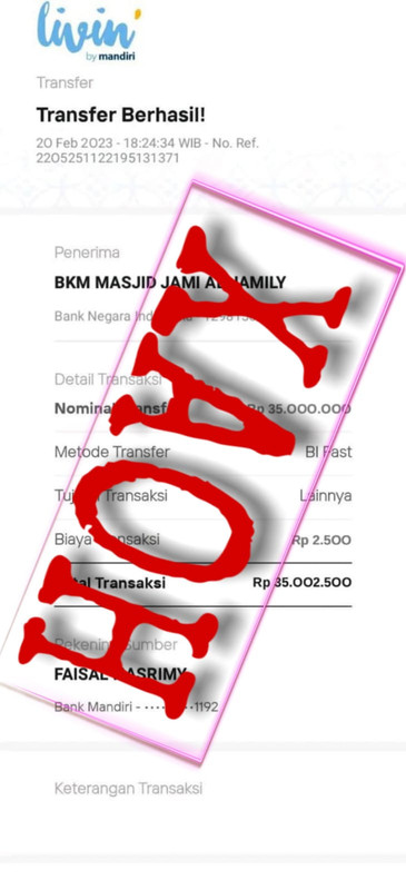 “Semoga penipuan berkedok seperti ini tidak terulang. Oleh karenanya, jika ada hal-hal seperti ini terjadi, kita harus crosscheck kebenarannya sehingga penipuan seperti ini tidak terulang lagi,” jelasnya.