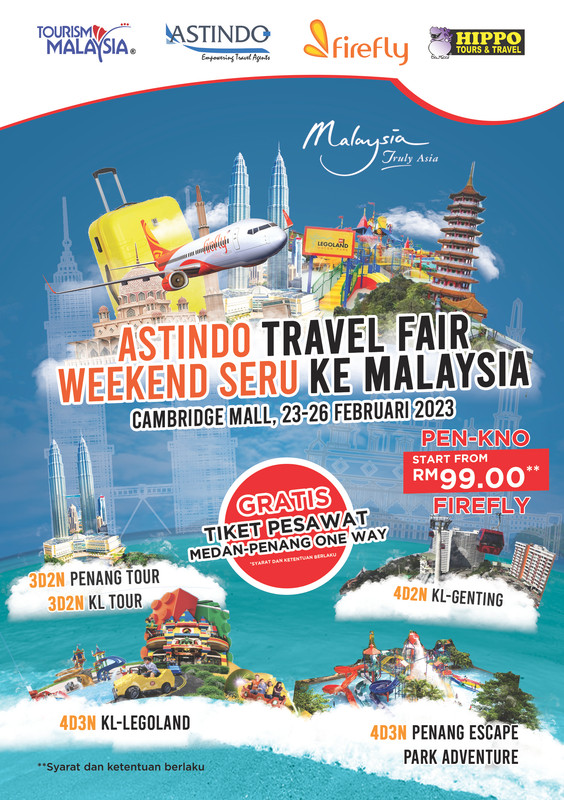 Dalam event Astindo Travel Fair 2023, Tourism Malaysia memberikan tiket penerbangan sekali jalan rute Medan-Penang secara gratis dengan maskapai Firefly.