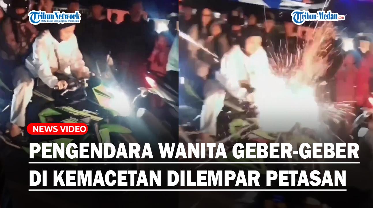 TRIBUN-MEDAN.COM - Beredar di media sosial video wanita pengendara bermotor dilempari petasan.