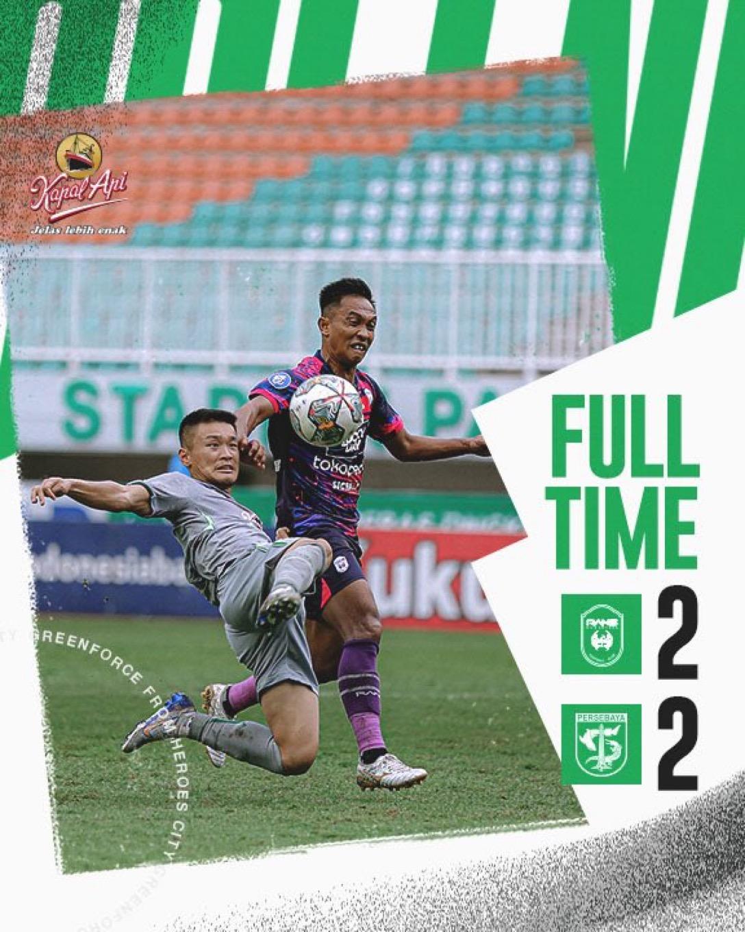 Duel RANS Nusantara FC vs Persebaya yang digelar di Stadion Pakansari, Bogor, Selasa (28/2/2023) berakhir dengan skor 2-2.