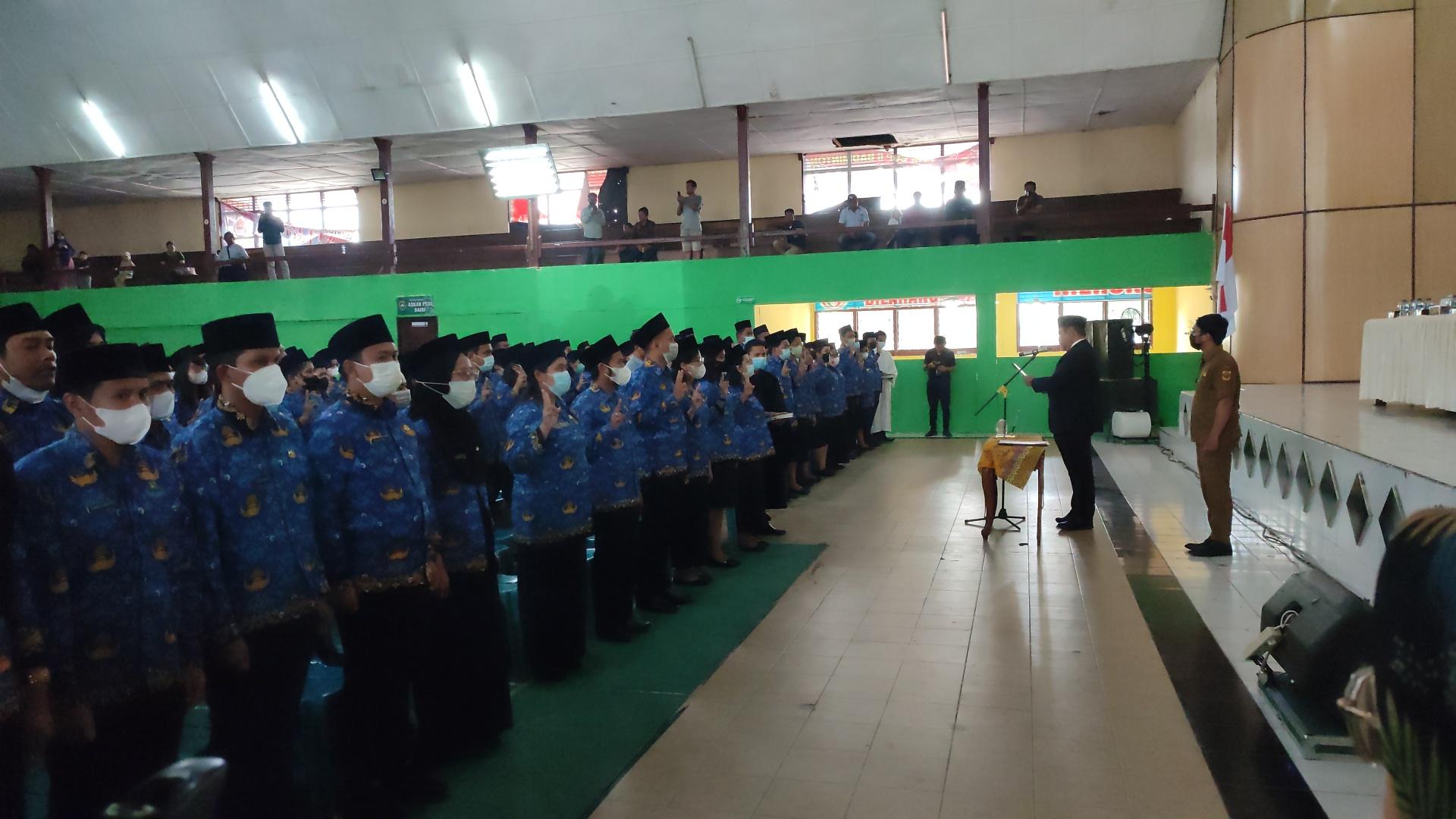 Ket : 286 ASN berserts ASN Eselon III dikukuhkan Bupati Dairi di GOR Sidikalang.