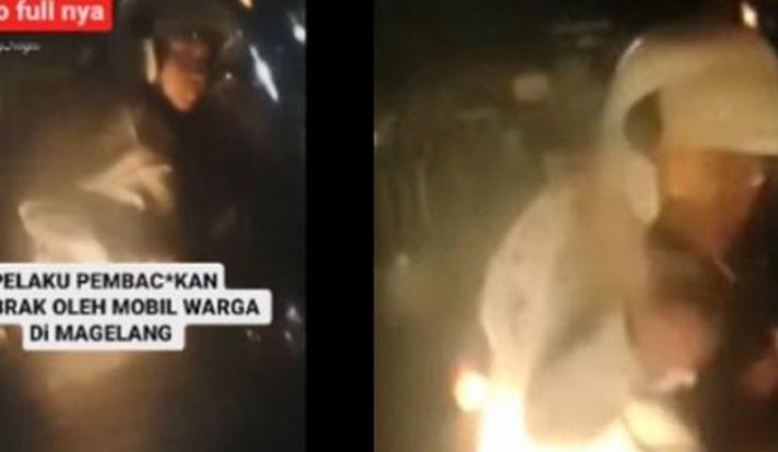 "PELAKU PEMBAC*KAN DITABRAK OLEH MOBIL WARGA Di MAGELANG," tambahnya dalam keterangan video.