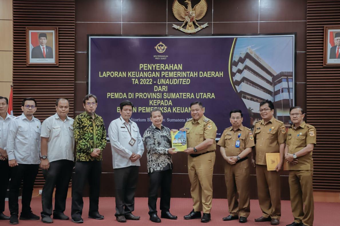 Penyerahan ini dilakukan langsung oleh Bupati Dr Eddy Berutu bersama Sekretaris Daerah Budianta Pinem dan Kepala BKAD, Dekman Sitopu, Kepala Inspektorat, Edy Banurea yang turut serta dihadiri tim dari perwakilan BPK Sumut.