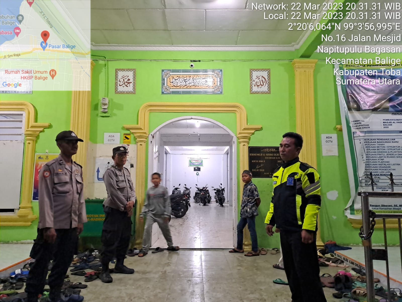 TRIBUN-MEDAN.COM, BALIGE-Memberikan rasa nyaman kepada warga di wilayah Balige, Polsek Balige melaksanakan pengamanan Ibadah Sholat Tarawih Pertama di Masjid Al-Hadhonah Balige Kabupaten Toba Sumatera Utara, Rabu (22/03/2023).
