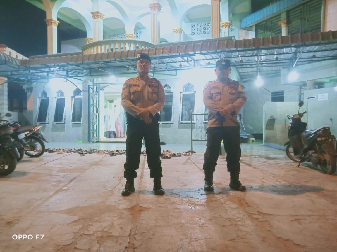 Personel Samapta Polres Tanjungbalai melakukan pengamanan (PAM) disetiap masjid yang tengah melakukan ibadah salat tarawih.