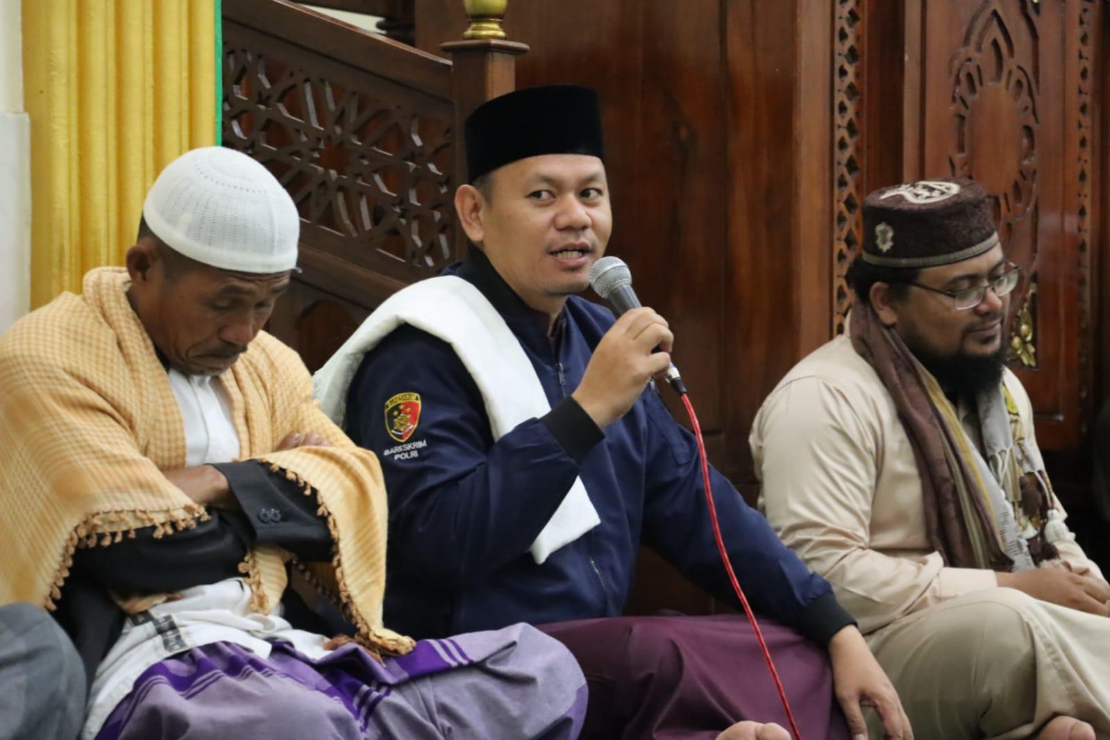 Kapolres Dairi AKBP Wahyudi Rahman SH, SIK, MM menyampaikan Kamtibmas secara pendekatan humanis kepada warga di di mesjid Jami' desa Bintang Mersada