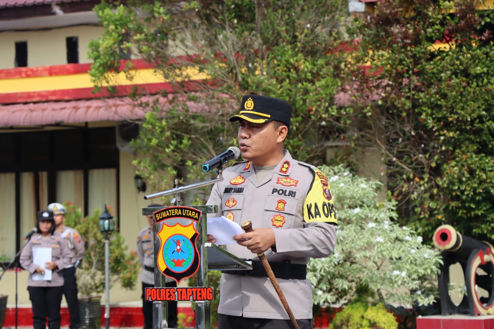 Apel gelar pasukan yang dipimpin Kapolres Tapteng AKBP Jimmy Christian Samma.