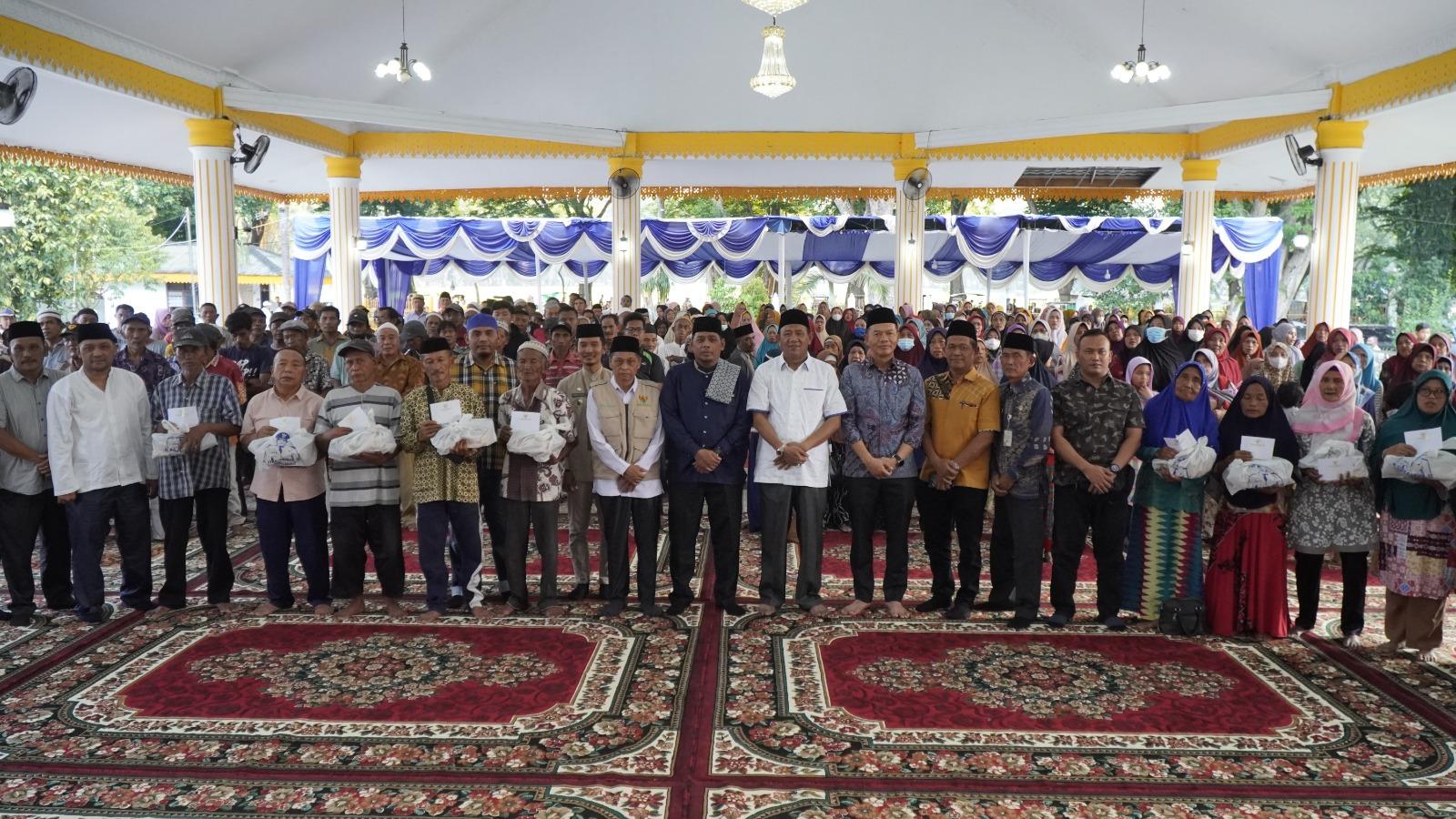 TRIBUN-MEDAN.COM, STABAT - Plt Bupati Langkat, Syah Afandin menyerahkan menyalurkan bantuan ramadhan berkah kepada warga, di rumah dinas, Jumat (14/4/2023).