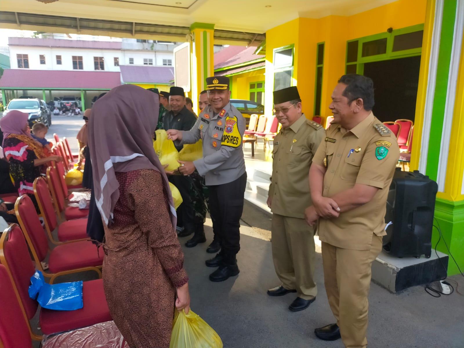 Kapolres Padangsidempuan AKBP Dwi Prasetyo Wibowo bersama Forkopimda menghadiri pemberian bantuan sosial kepada masyarakat tidak mampu di bulan Suci