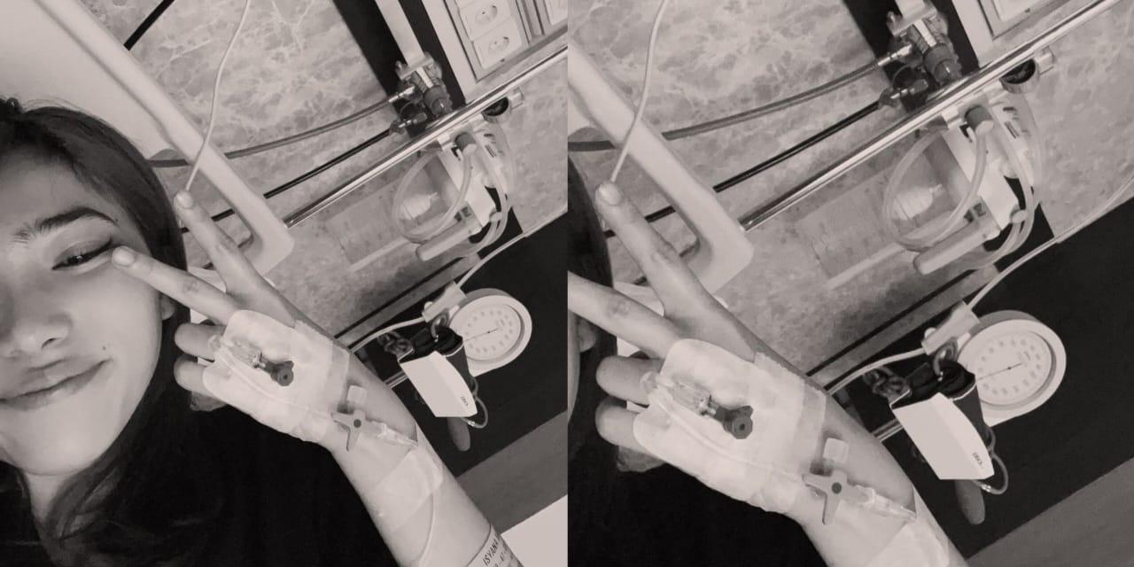 Isyana Sarasvati juga mengunggah fotonya tengah berbaring di ranjang rumah sakit dengan selang infus terpasang.
