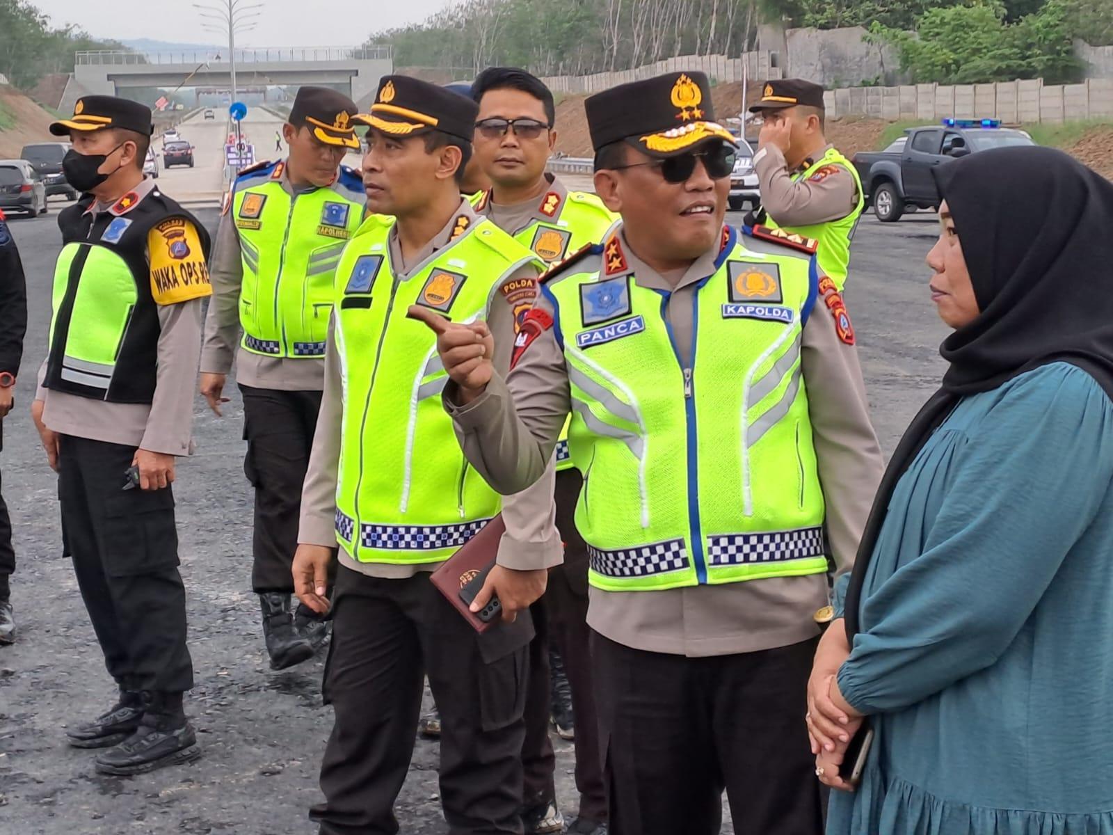Pantauan di lapangan, terlihat Irjen Panca melakukan pemeriksaan jalan di seputaran pintu masuk gerbang Tol Sinaksak dan memberikan arahan pembuatan