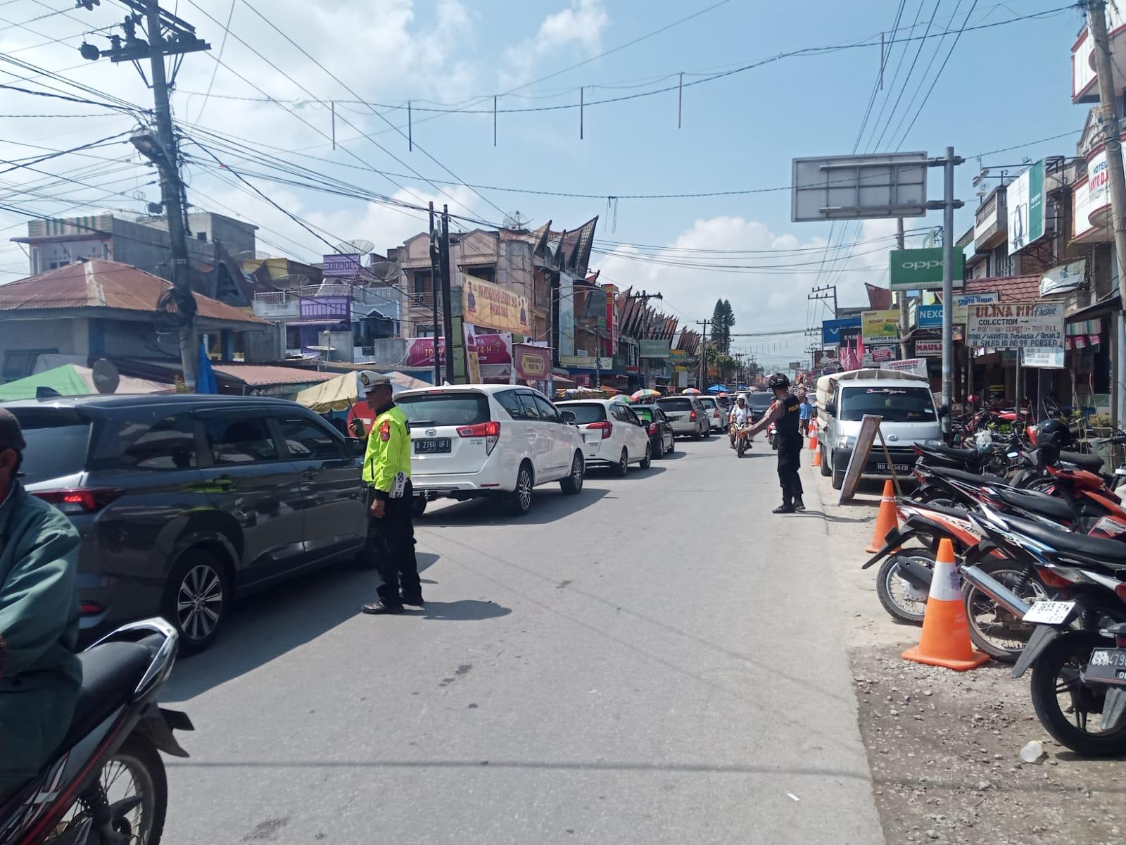 Untuk mengurai kepadatan di sepanjang Jalan Lintas Porsea akibat adanya pasar tumpah, petugas dari Polres Toba yang bertugas di Pos PAM Porsea disiagakan di sejumlah titik untuk mengatur arus lalu lintas.