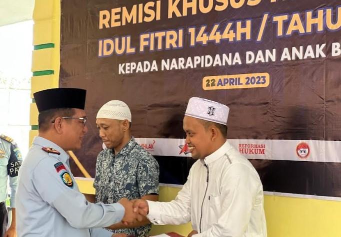 'Sebelum penyerahan dan penerimaan Remisi tersebut WBP dan pegawai lapas melaksanakan salat id untuk merayakan hari raya idul fitri 1444 H," kata Pithra.