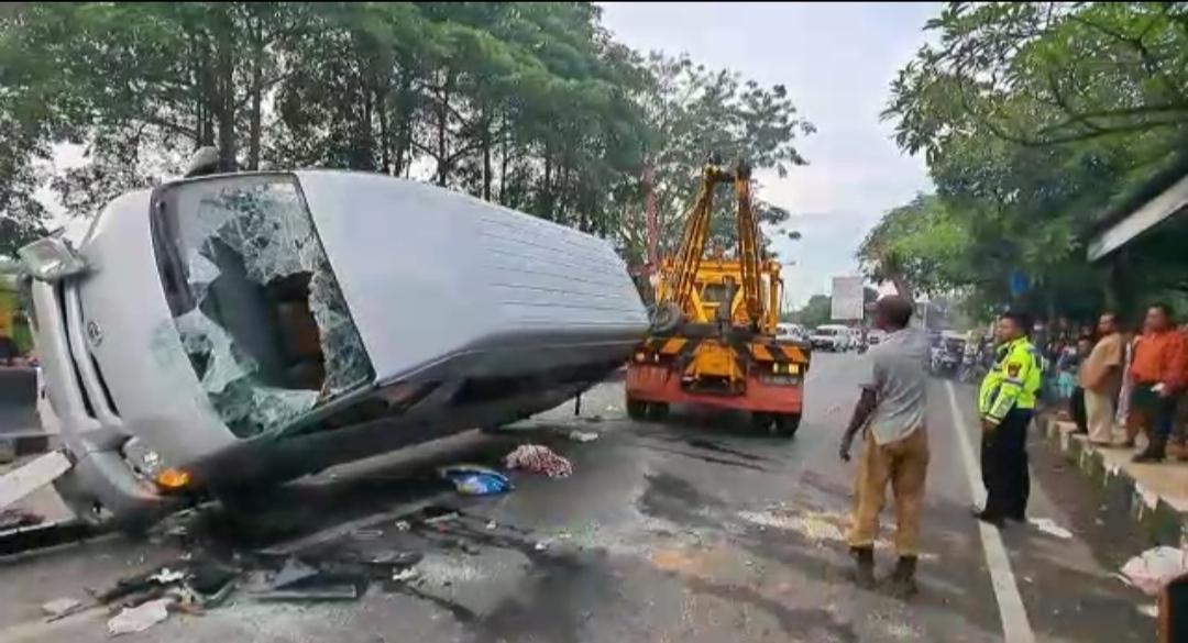 Polisi Beberkan Penyebab Mini Bus Berpenumpang Terguling di Tebinggtinggi, Sopir Melarikan Diri