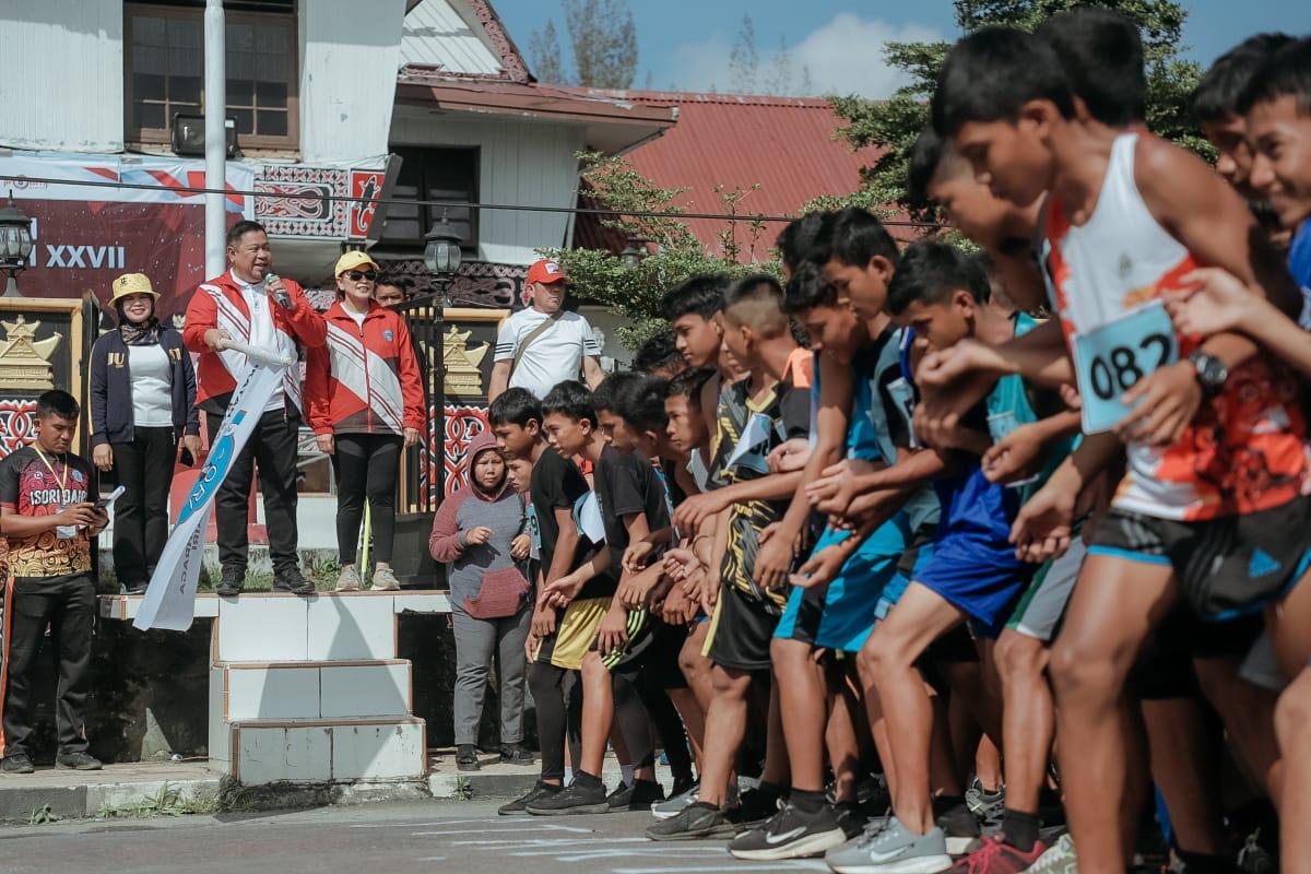 Untuk lomba lari, Bupati Dairi Eddy Keleng Ate Berutu melepas para peserta yang start dari depan kantornya, Senin (1/5/2023).