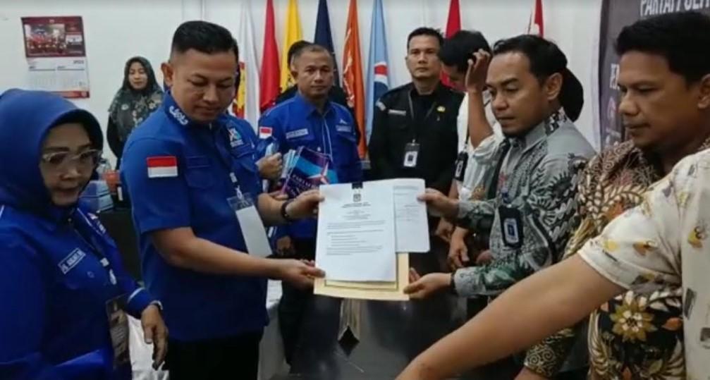 DPC Partai Demokrat Kabupaten Serdang Bedagai mendatangi Komisi Pemilihan Umum pada hari terakhir pendaftaran bacaleg.