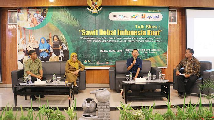 Demikian disampaikan Rektor Institut Teknologi Sawit Indonesia (ITSI) Aries Sukariawan, SP, MP dalam sambutannya pada Talk Show Sawit Hebat Indonesia Kuat di Ruang Sidamanik, ITSI, Jalan Willem Iskander, Medan, Senin (15/5). Talk show tersebut digelar dalam rangkaian kegiatan Potret UMKM Perkebunan yang digelar selama tiga hari, Senin - Rabu (15-17/05). Talk show ini mengangkat tema “Pemberdayaan petani dan pelaku UMKM guna mendukung sistem dan tata kelola agribisnis kelapa sawit rakyat secara berkelanjutan”
