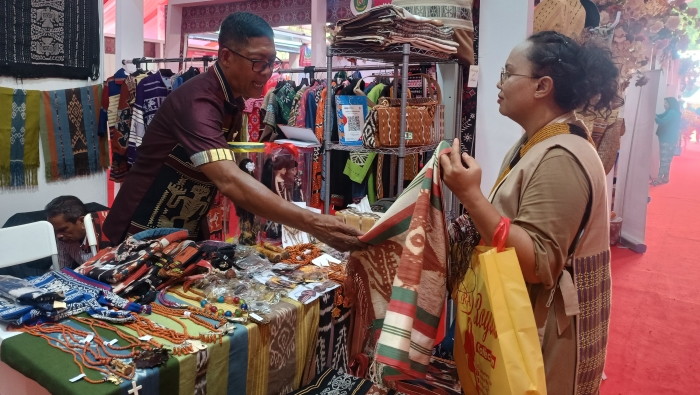 Beragam kerajinan dari berbagai daerah ditampilkan dalam Expo HUT Dekranas ke 43, termasuk kain tenun khas Belu