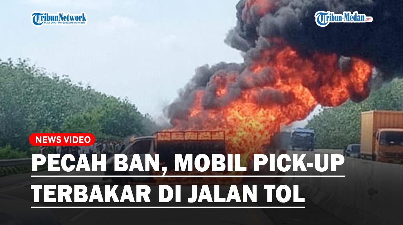 Pecah Ban Hingga Tabrak Pembatas Jalan, Mobil Pickup Terbakar di KM 63 Tol Tebingtinggi - Medan