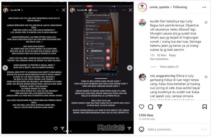 Tak terima dengan perlakuan tersebut, Lolly sontak merasa kesal dan menyinggung sikap dari sang ibu lewat Instagram Story-nya.