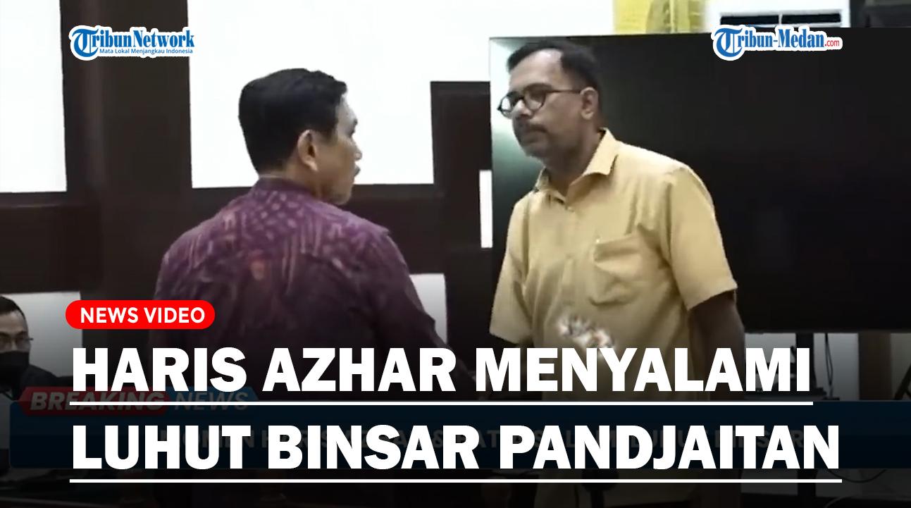 TRIBUN-MEDAN.COM - Terdakwa Haris Azhar dan Fatia Maulidiyanti menyalami Menko Marves Luhut Binsar Pandjaitan di sidang.