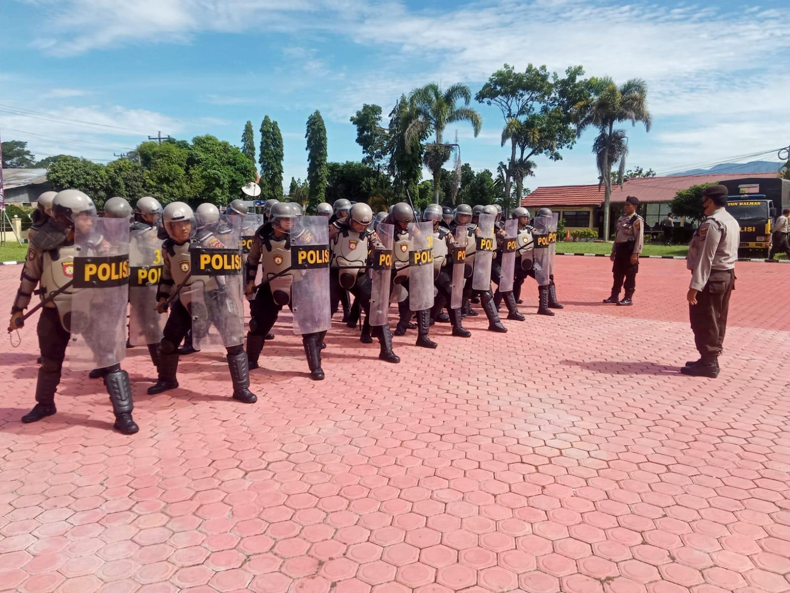 Kasat Samapta Polres Toba AKP D Hutauruk pimpin pelatihan pengendalian massa (Dalmas) 60 orang personel Bintara Remaja Sat Samapta yang terdiri dari