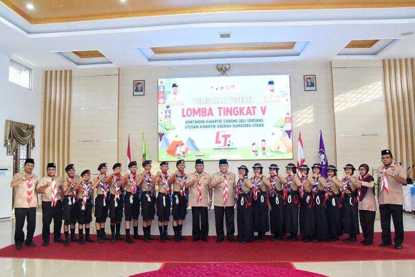 Pada pelepasan yang diadakan di Aula Cendana Lantai II, Kantor Bupati Deli Serdang dan dihadiri Wakil Bupati (Wabup) Deli Serdang yang juga Ketua Kwarcab Gerakan Pramuka Deli Serdang, HM Ali Yusuf Siregar; anggota DPRD Deli Serdang yang juga Ketua Palang Merah Indonesia (PMI) Deli Serdang, H Ismayadi SH, unsur Mabicab Kwarcab Deli Serdang, para Wakil Ketua Kwarcab Gerakan Pramuka Deli Serdang, Andalan Kwarcab Deli Serdang, pelatih, pembina dan pendamping serta orangtua peserta, Bupati menyatakan dukungan penuh Gerakan Pramuka Regu Berprestasi Kwarcab Deli Serdang dalam mengikuti Lomba Tingkat Regu Pramuka Penggalang Lima (LT-V) yang diselenggarakan, pada Sabtu, 17 Juni 2023 sampai Jumat, 23 Juni 2023.