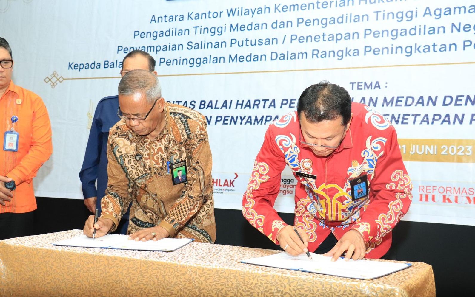 Kakanwil Kemenkumham Sumut Teken MoU dengan Pengadilan Tinggi Medan & Pengadilan Tinggi Agama Medan