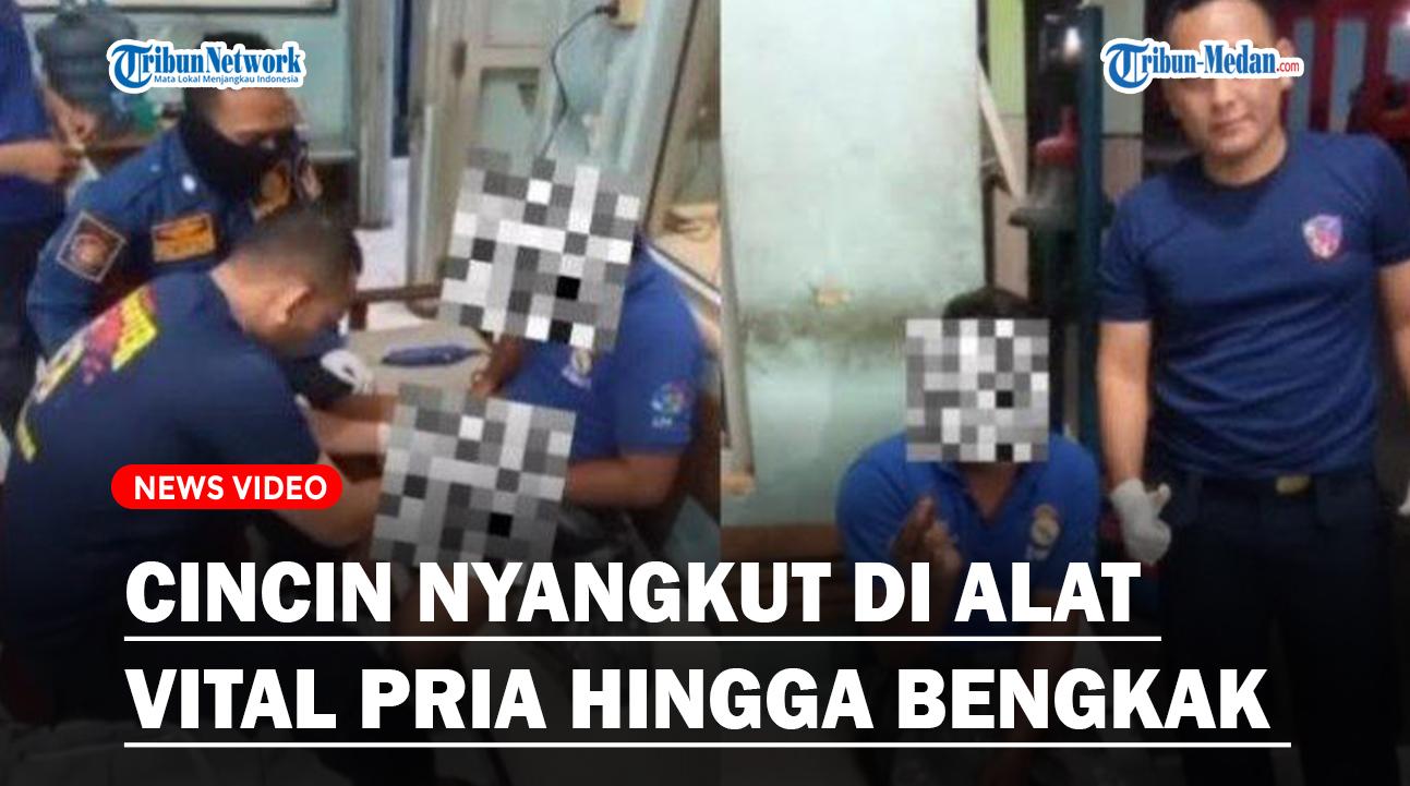 TRIBUN-MEDAN.COM- Foto momen petugas Dinas Pemadam Kebakaran (Damkar) lepaskan cincin yang nyangkut di alat vital seorang pria viral di media sosial.