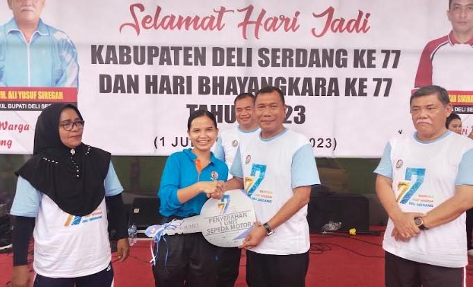 Rehulina dan Rosleini Siregar Dapat Hadiah Utama 2 Unit Motor pada Jalan Santai HUT Deli Serdang